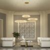A refined and luminous table lamp that combines elegance and modernity. The golden metal frame supports a cascade of transparent crystal octagons that diffuse light brilliantly. The sinuous and contemporary design makes it a perfect furnishing complement for elegant and sophisticated environments.