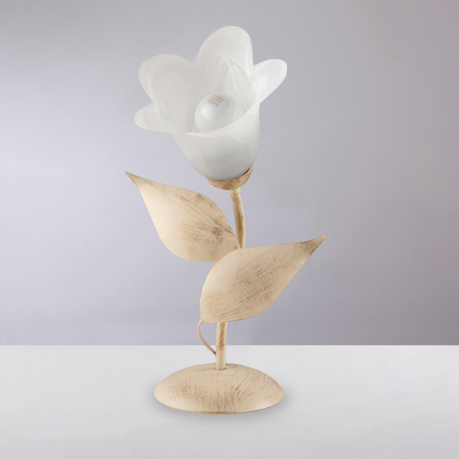 - Materiale: struttura in ferro laccato avorio con dettagli antichizzati oro, diffusori in vetro alabastro bianco per un’illuminazione morbida e diffusa.