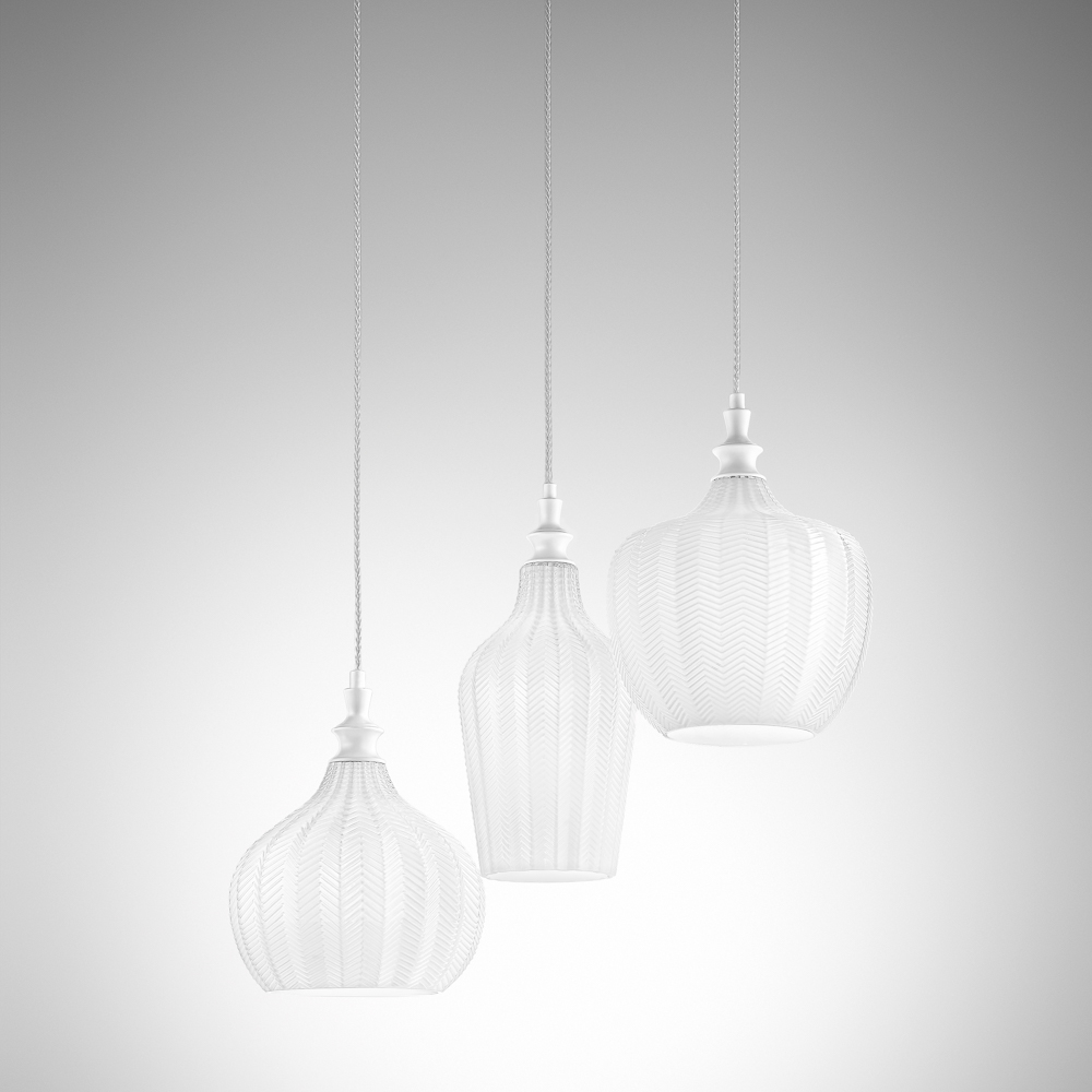 La lampada è composta da tre diffusori in vetro di forme diverse, ciascuno dei quali può essere regolato in altezza tramite il cavo. In questo modo si possono creare delle composizioni personalizzate in base alle proprie esigenze