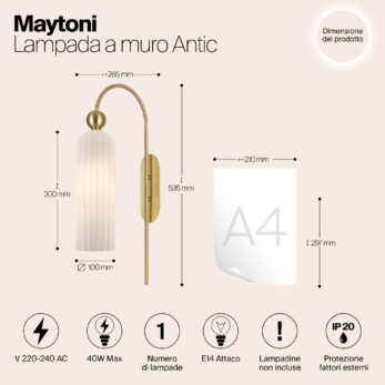 La lampada da parete Maytoni Antic con vetro grigio è la scelta perfetta per ambienti moderni e contemporanei.