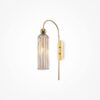 The cylindrical diffuser in ribbed molded glass ensures even light distribution, while the gold metal structure adds an elegant and refined touch.