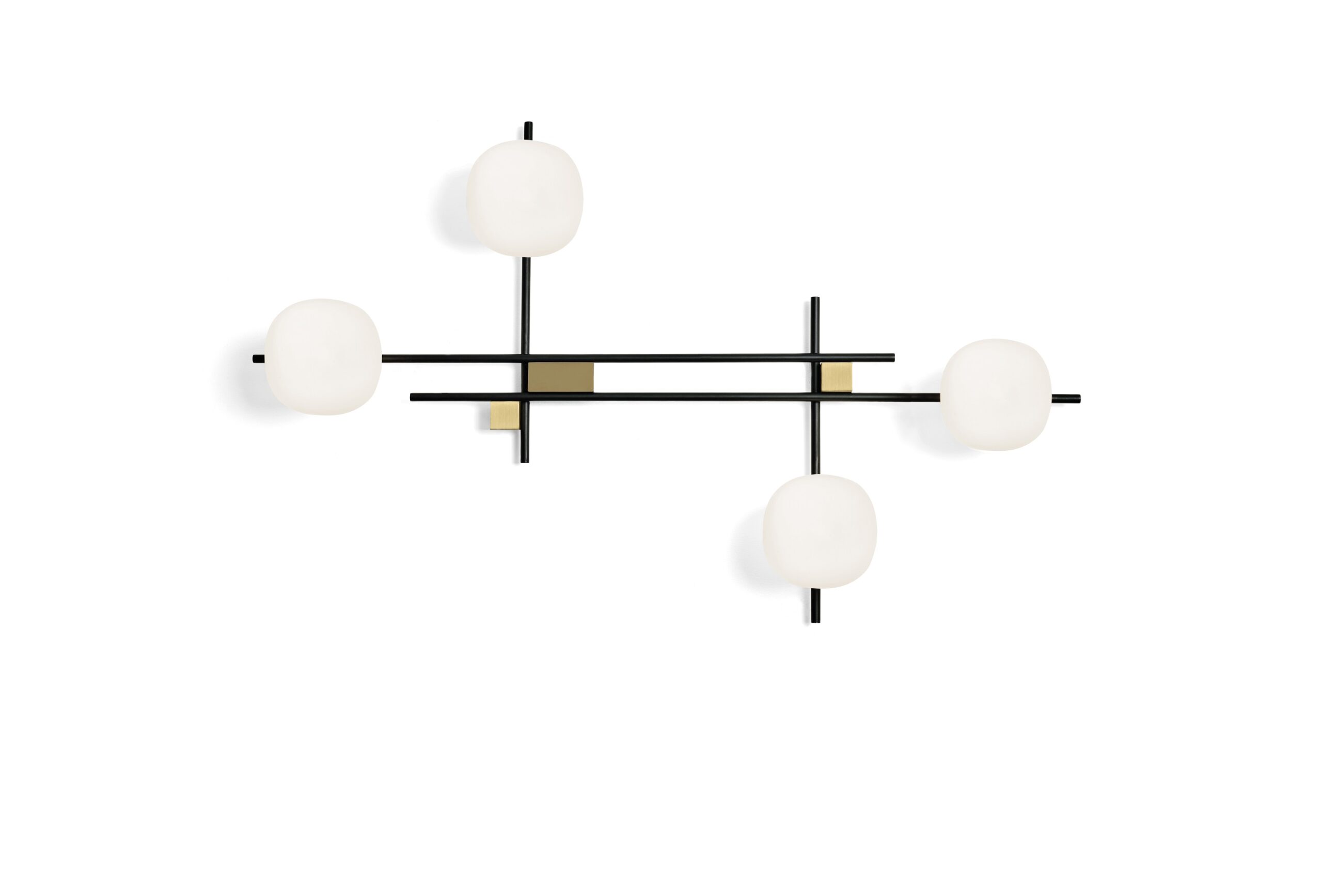 I vetri soffiati opalini, dalla forma arrotondata e morbida, diffondono una luce uniforme e accogliente, perfetta per illuminare e decorare pareti importanti, zone living ecamere da letto