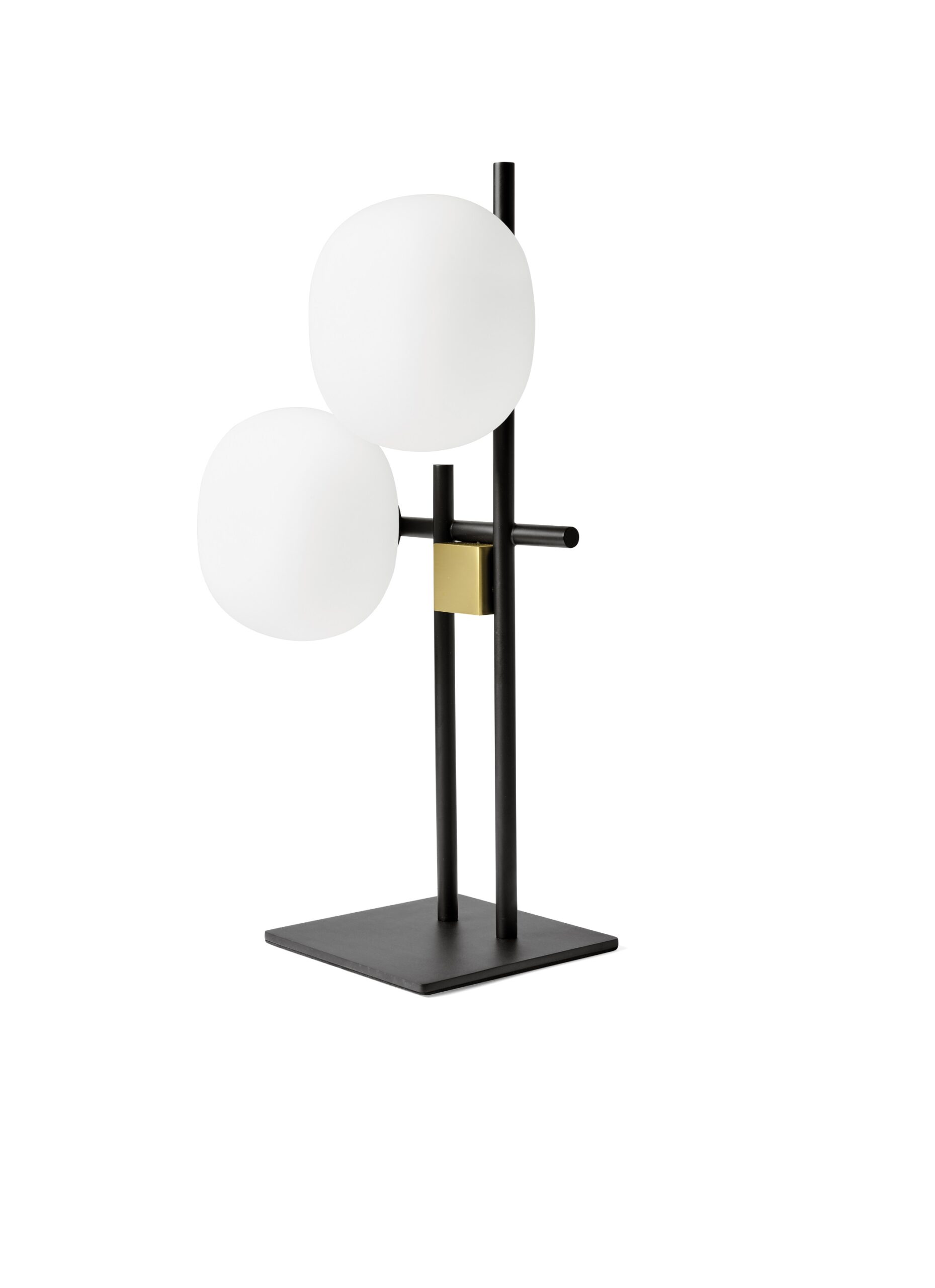 La montatura è in metallo nero, impreziosita da dettagli oro spazzolato e oro rosa I diffusori sono in vetro opalino dalla forma arrotondata. che diffondono una luce morbida e accogliente, perfetta per creare atmosfere rilassanti e sofisticate.