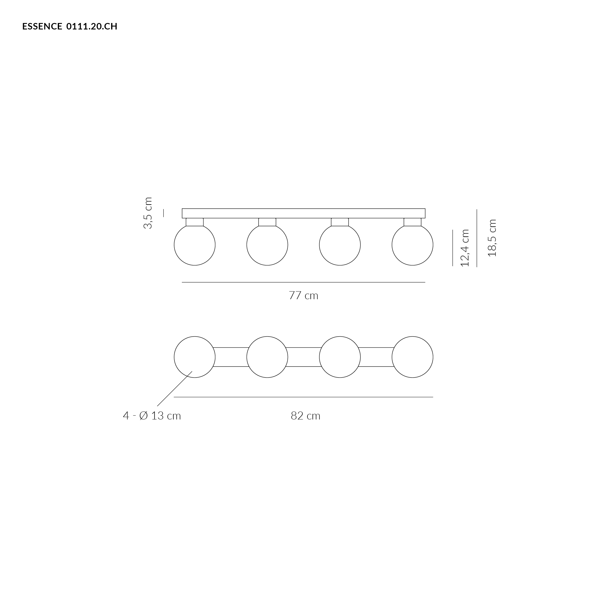 La Essence 4 Luci di Vivida International è una lampada versatile ed elegante, utilizzabile sia come plafoniera sia come applique. Il suo design moderno e minimale è caratterizzato da una base rettangolare in alluminio colore champagne, sulla quale sono posizionate quattro sfere in vetro con LED integrato, che diffondono una luce calda e uniforme.